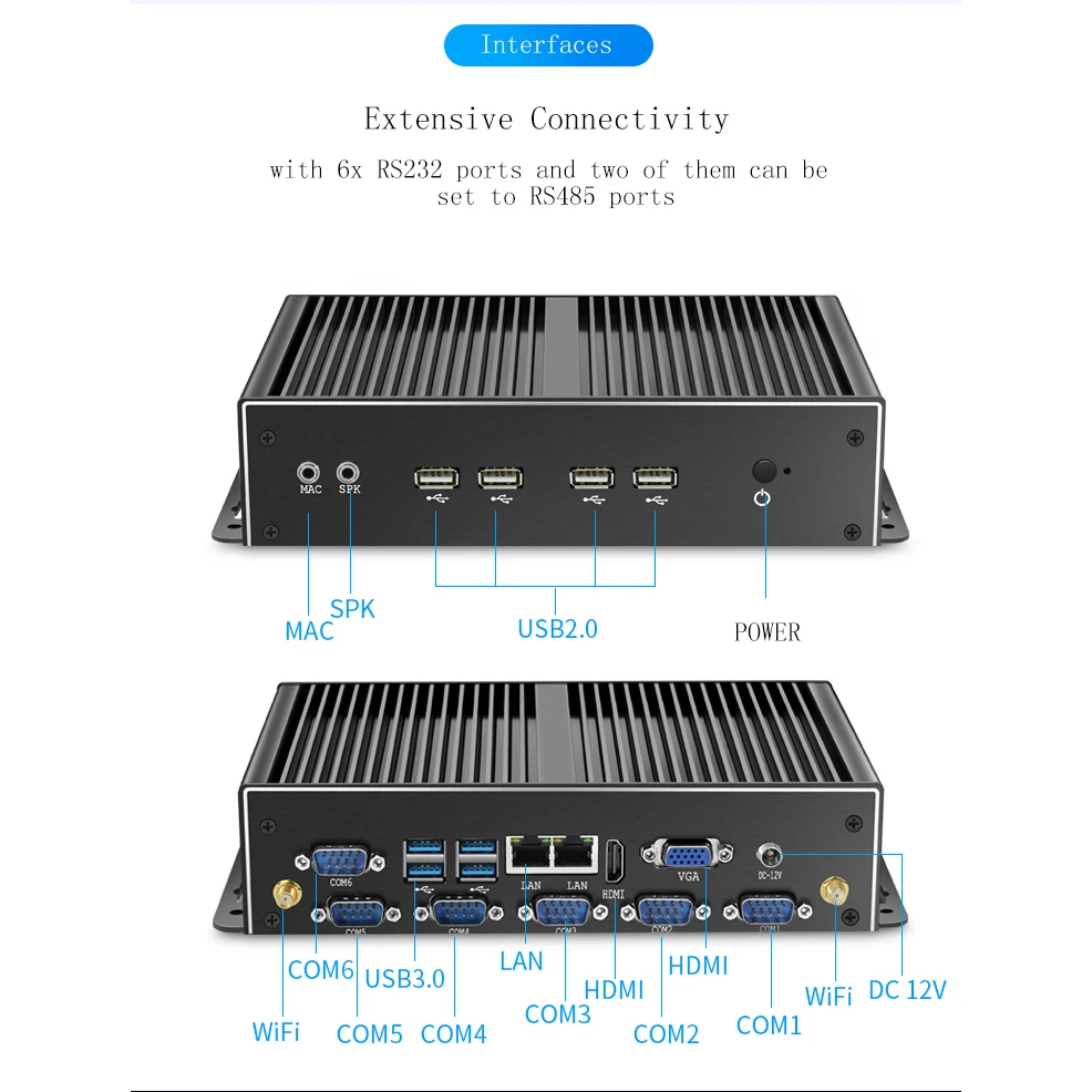 OLOEY Mini PC Intel Core i7-4500U Windows Linux 300Mbps WiFi 2*Gigabit Ethernet 6*RS232/RS485 HDMI VGA 8*USB Watch Dog