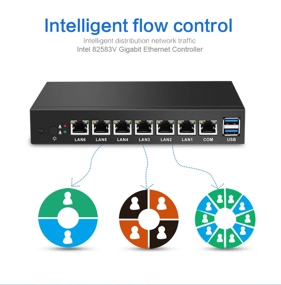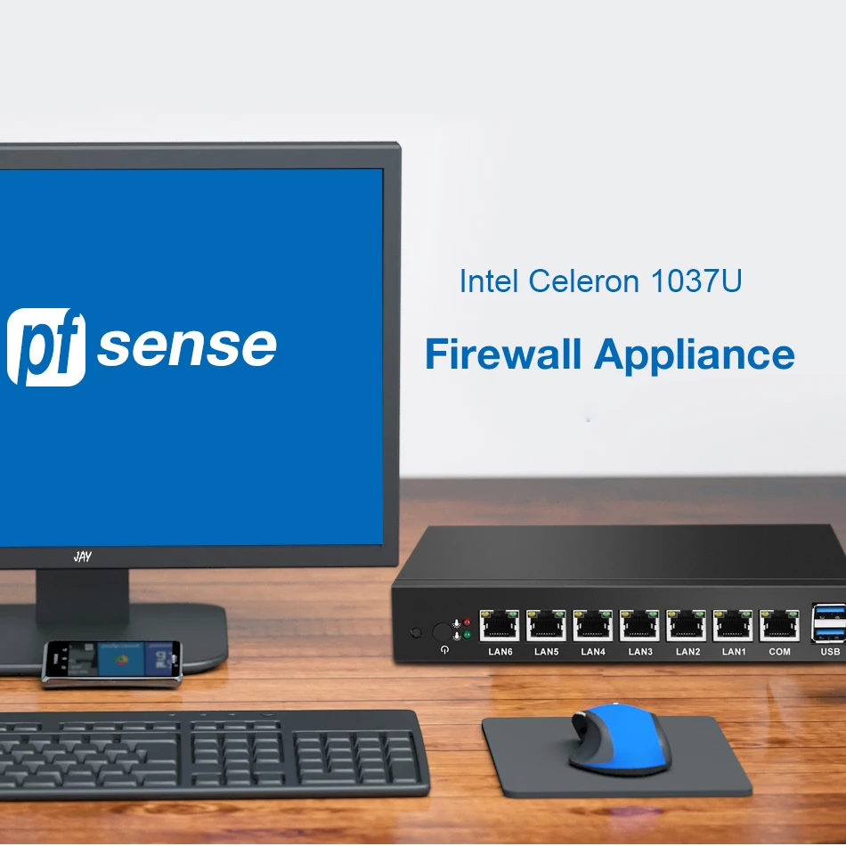 Fanless Mini PC 6*LAN Ports RJ-45 Gigabit Ethernet Celeorn 1037U Dual Core VGA COM Use Pfsense as Router Firewall Windows Lunix