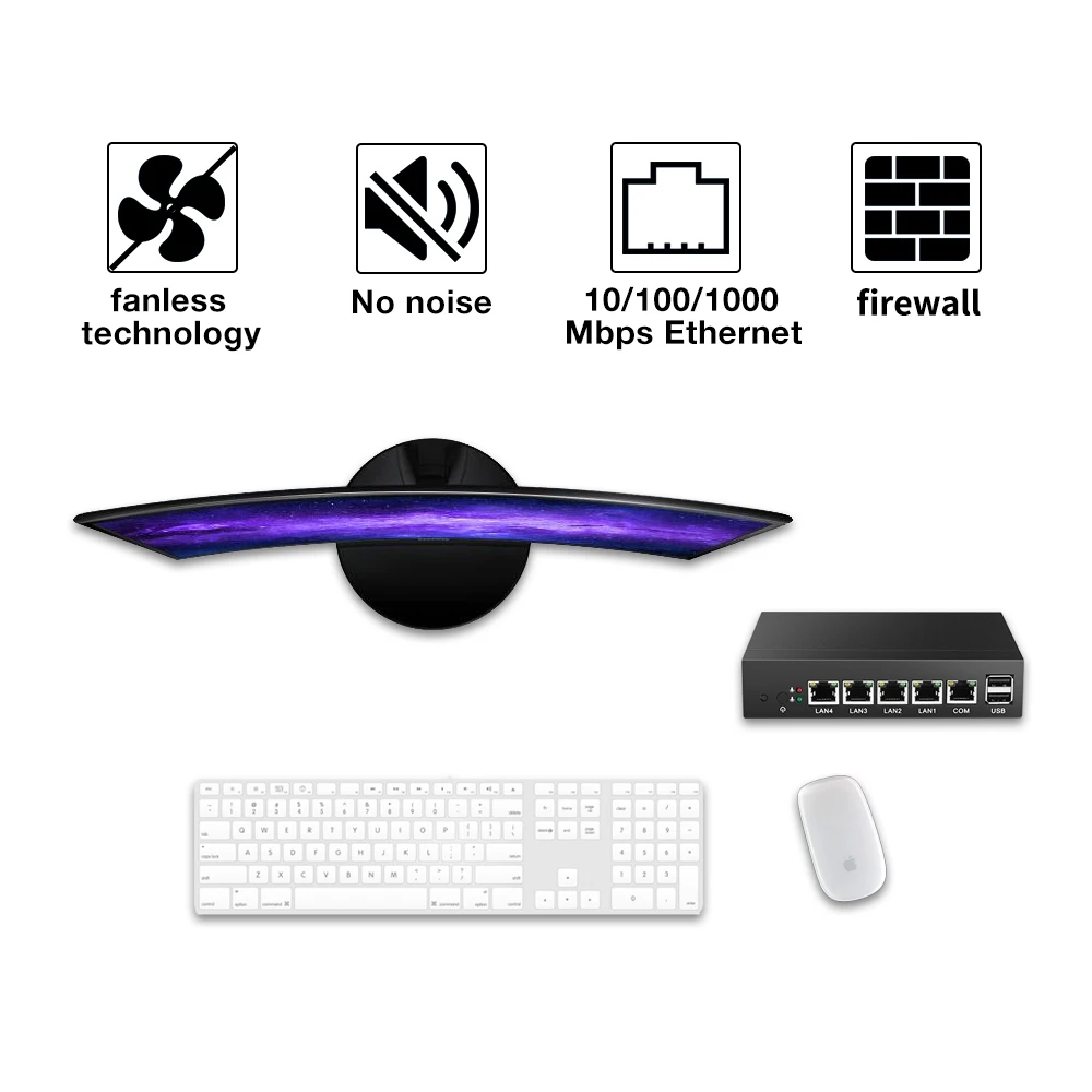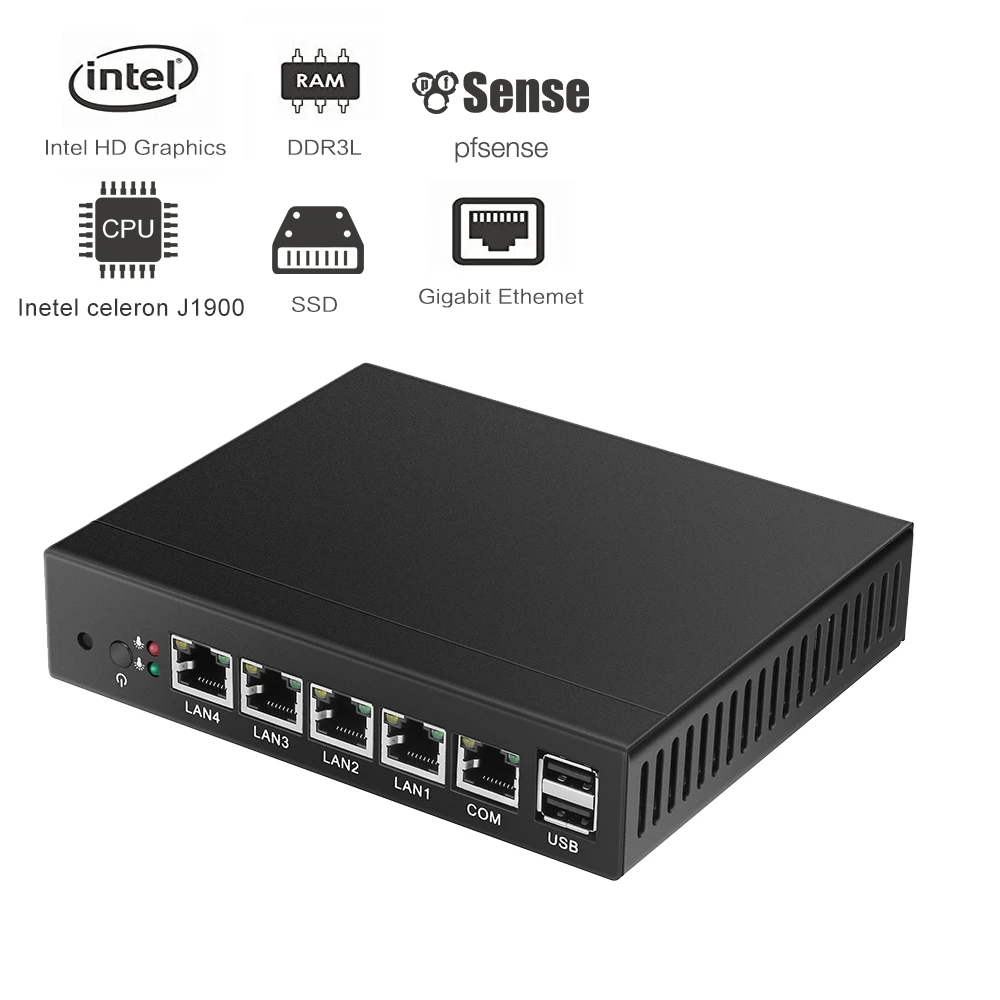 HLY Mini PC Intel Celeron J1900 Quad core 4*Gigabit Ethernet LAN Mini Computer Celeron J1800 Fanless PC Pfsense Firewall Router