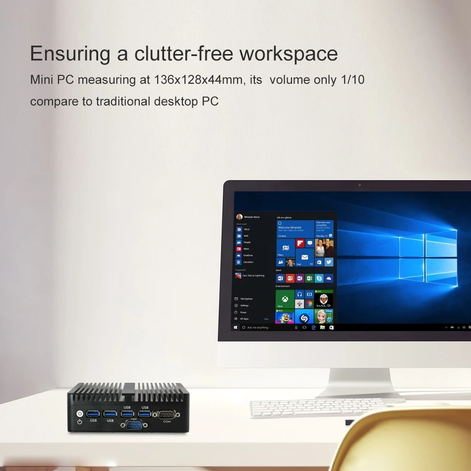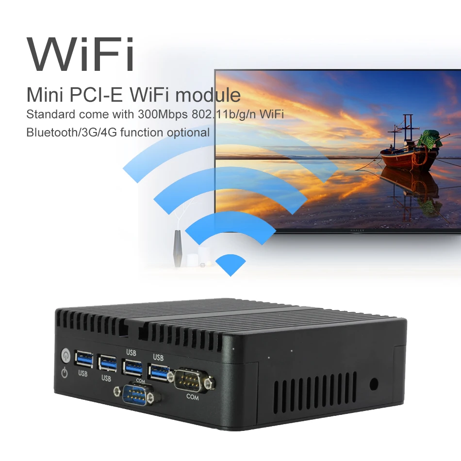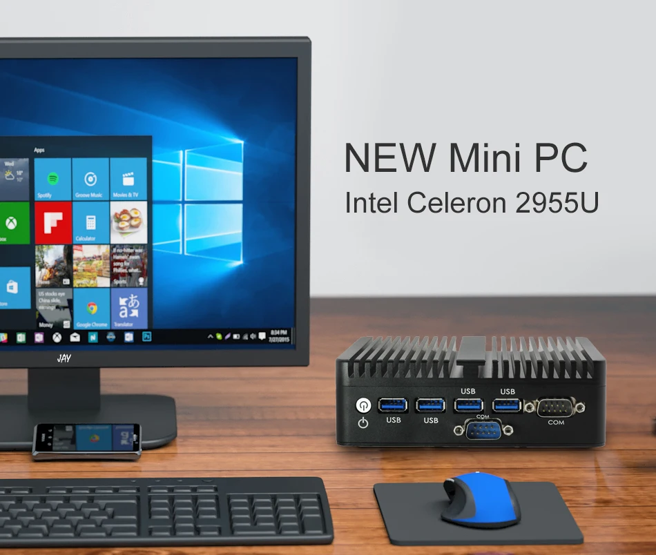 Mini Desktop Computer Intel Celeron 2955U Windows 10 Linux Fanless Mini PC 2xHDMI 2x Gigabit LAN 2x RS232 WiFi 4xUSB3.0 HTPC