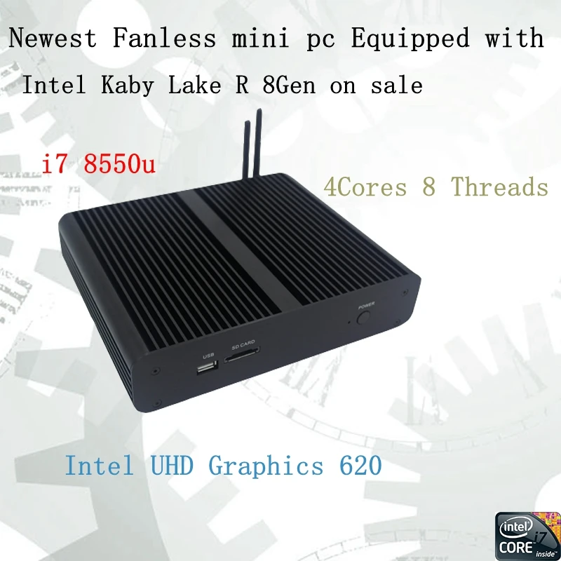 Newest Kaby Lake R 8Gen Fanless pc i5 8250u/i7 8550u Intel UHD 620 win10 Quad Core 8 Threads DDR4 2133 2400 NUC Freeshipping pc
